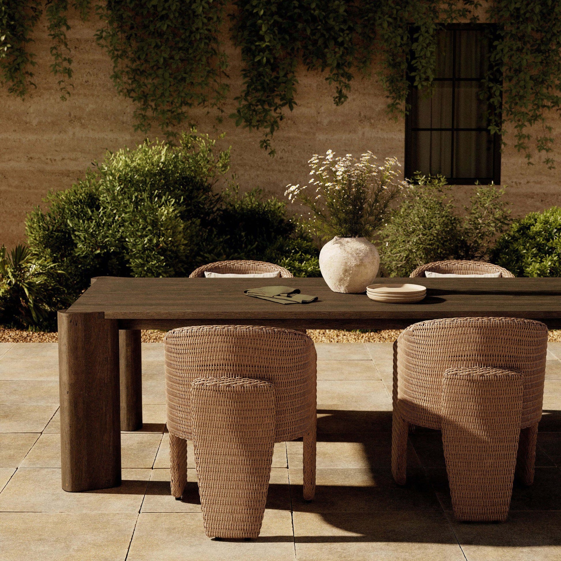 Dine in style with the Lev Outdoor Dining Table, a perfect blend of modern design and outdoor durability. Its sleek form and sturdy construction make it an ideal focal point for open-air gatherings, from relaxed brunches to sophisticated dinners.