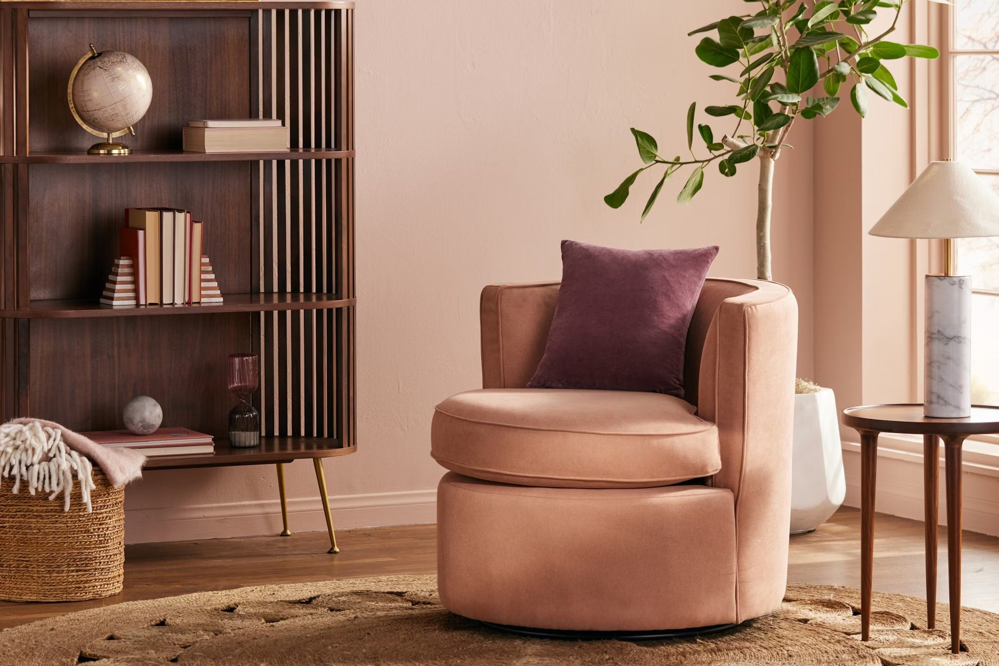 Cozy as a hug yet timeless like a classic tub chair, this swivel chair’s rounded details make it a seamless fit for any setting. With its clean, curvy lines and pleasantly circular silhouette, it stands out while offering an inviting spot to sit back and relax.