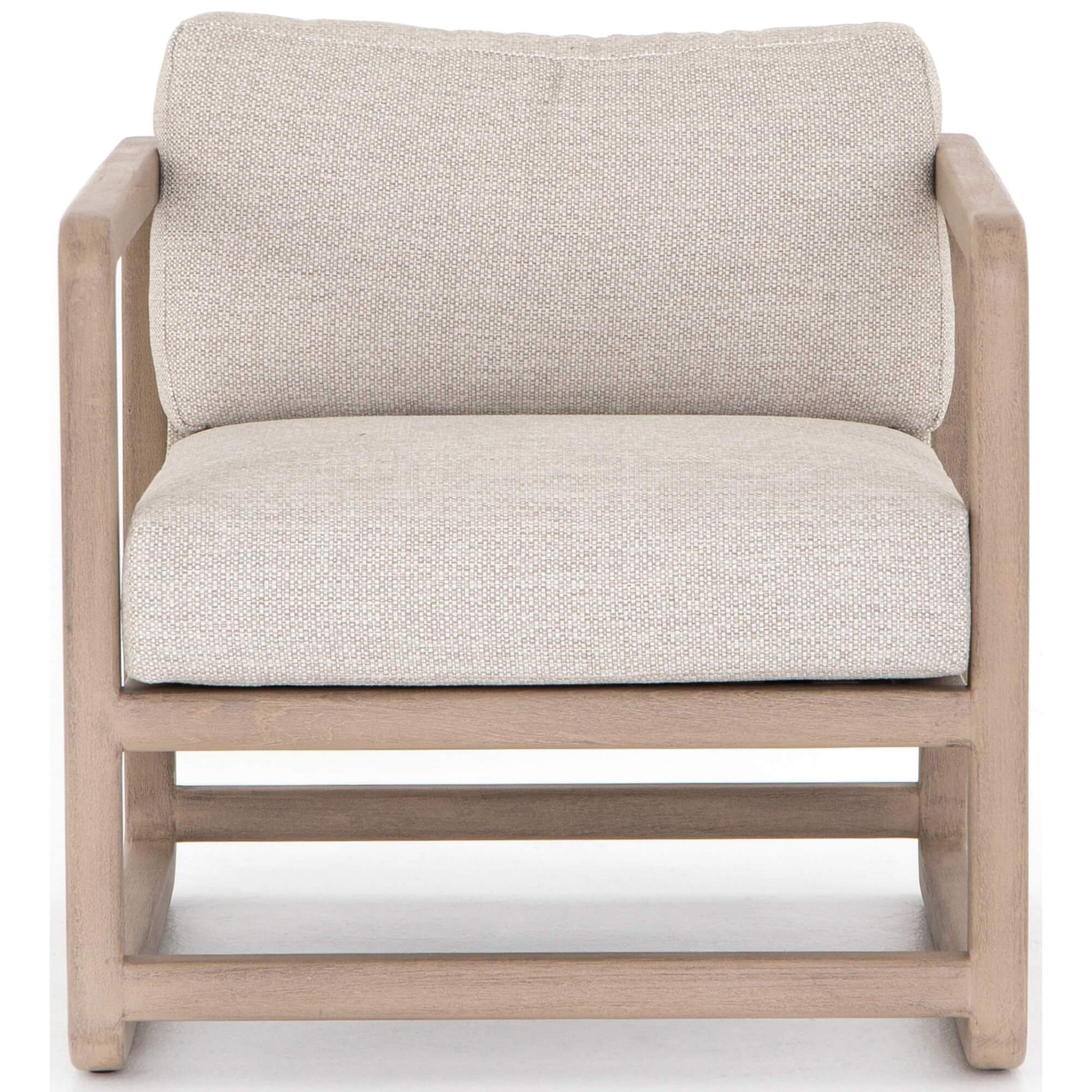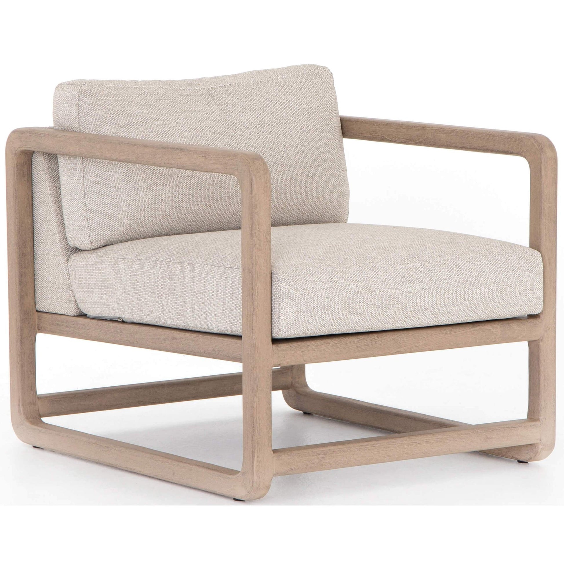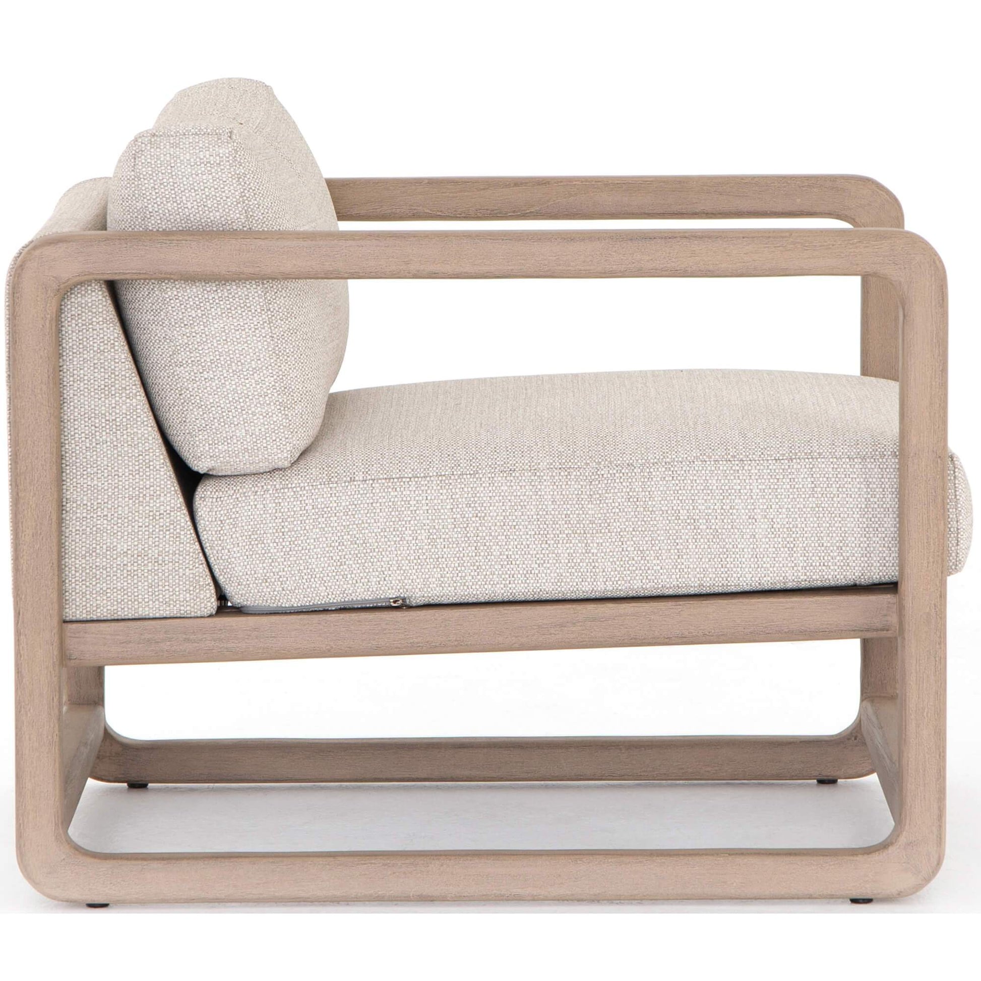 The Trevon Outdoor Chair brings a modern architectural flair to outdoor seating, making a bold statement in any setting. Crafted with a teak wood frame and rail legs, this chair combines style and durability to create an unforgettable seating experience.
